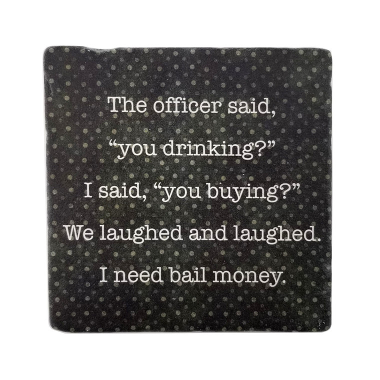 The officer said, "you drinking?" I said, "you buying?" We laughed and laughed. I need bail money.